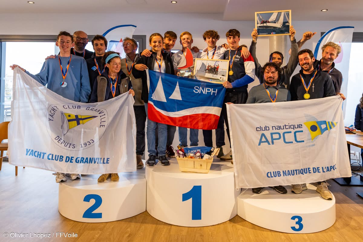 Auteurs d’une phase de qualification très solide, le jeune équipage du SNO Nantes mené par Anatole Thomas aura été l’une des révélations de la compétition. Le club ligérien prend finalement une belle 4e place, pleine de promesses pour l’année prochaine, pour une nouvelle édition qui aura lieu à quelques kilomètres de chez eux, à l’APCC du côté de Pornichet. L’APCC justement, le club le plus titré de la LNVoile avec 4 victoires, est de nouveau monté sur le podium, à la 3e place, grâce à Mathieu Durand, Thomas Mellano, Benoist Martin et Julien Augereau. Devant eux sur la 2e marche, un autre club habitué à cette unique compétition 100% interclubs au niveau national : le Yacht Club de Granville. Encore cette année, l’inénarrable Benoit Charon était venu en terre rochelaise avec un équipage qui rassemblait toutes les générations, accompagné également par un autre équipage 100% féminin du club, issu du circuit WLS Trophy. Les Normands n’ont été finalement battus que par d’autres normands, l’équipage du club de Sport Nautique et Plaisance du Havre.